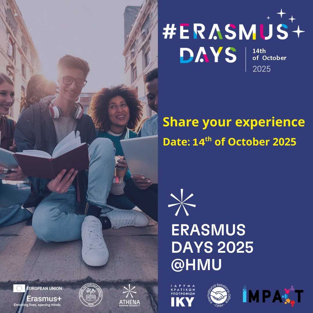 Η εκδήλωση, με τίτλο «Μοιράσου τις εμπειρίες σου στο ERASMUS» (Sharing ERASMUS Experiences), πραγματοποιείται στο πλαίσιο της διεθνούς εβδομάδας ErasmusDays 2025 (https://www.erasmusdays.eu/).
